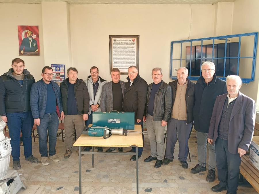 Üçpınar Mahallemizin ihtiyacı olan mezar kazarken çıkan taşların kırılmasında ve köyümüzdeki üyelerimizin inşaat işlerinde ağır kırıcı olarak kullanmaları için kırıcı ve delici hiltiyi üyelerimize teslim ettik.